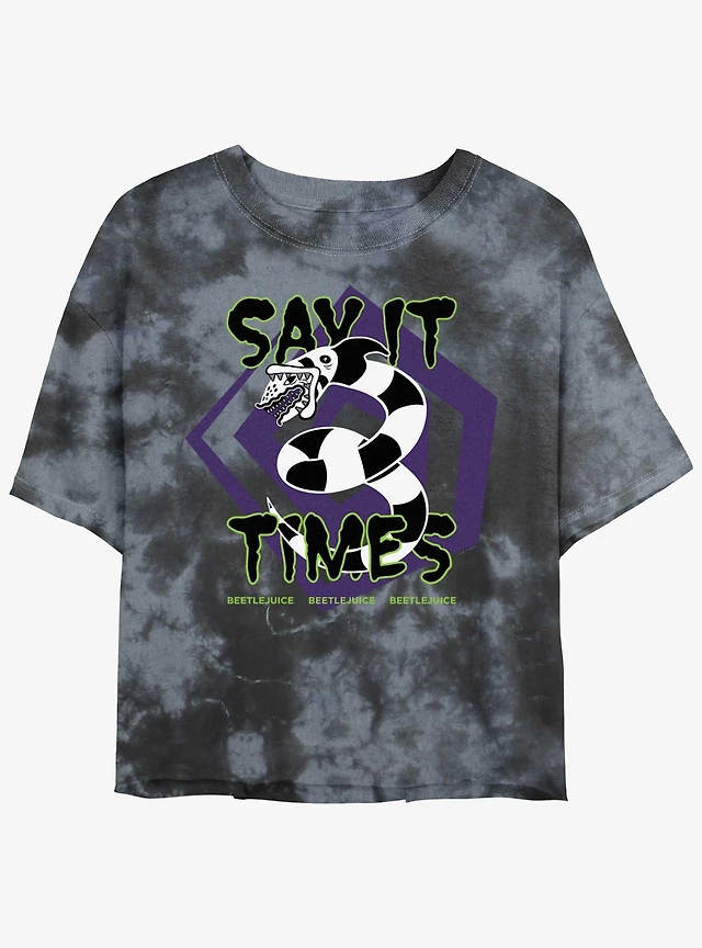 Beetlejuice Say It 3 Times Womens Tie-Dye Crop T-Shirt