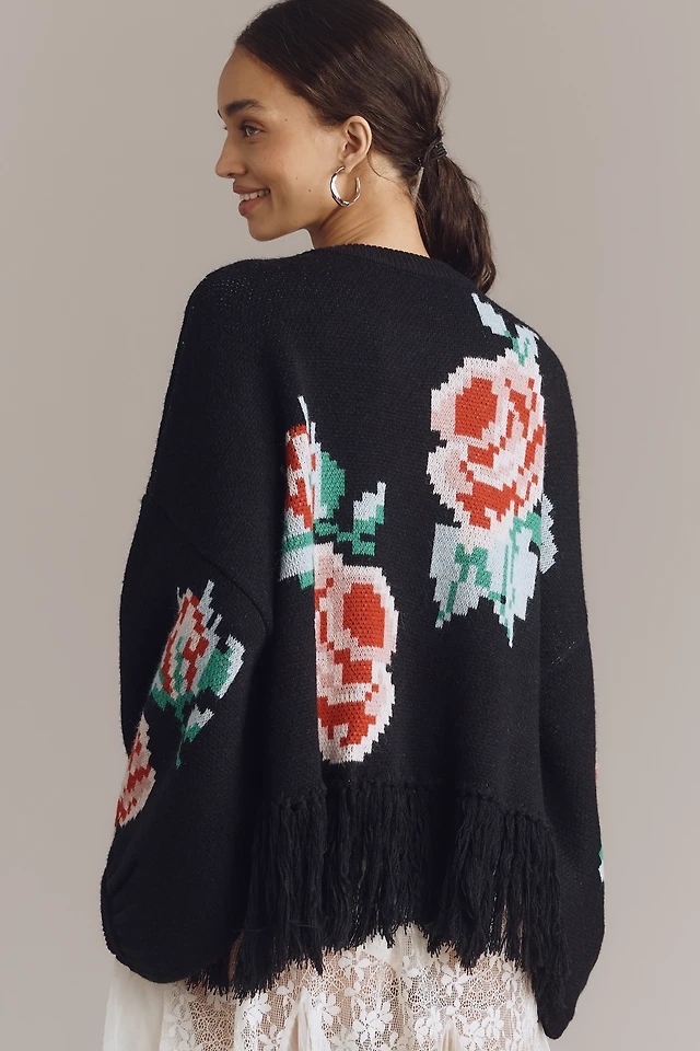 Bel Kazan Fringed Floral Cardigan Sweater
