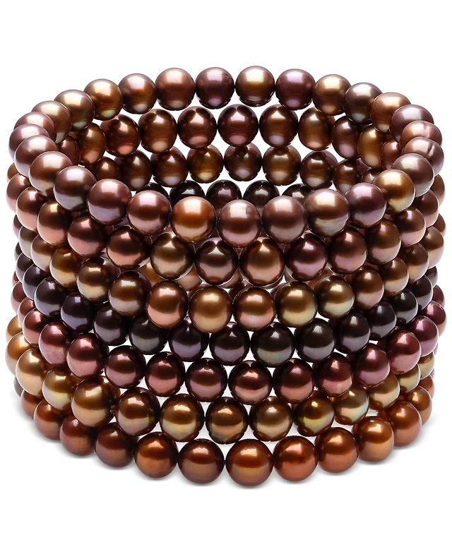 Belle de Mer 7-Pc. Set Dyed Chocolate Cultured Freshwater Baroque Pearl (6-7mm) Stretch Bracelets