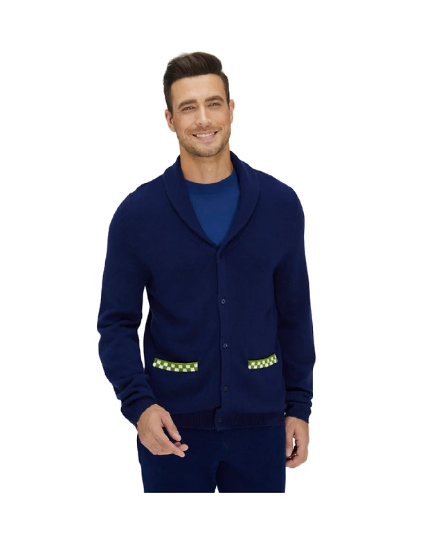 Bellemere Navy Blue and Green Merino Cardigan