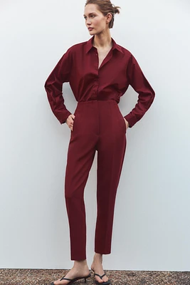 RIBBED BELTED POPLIN PANTS