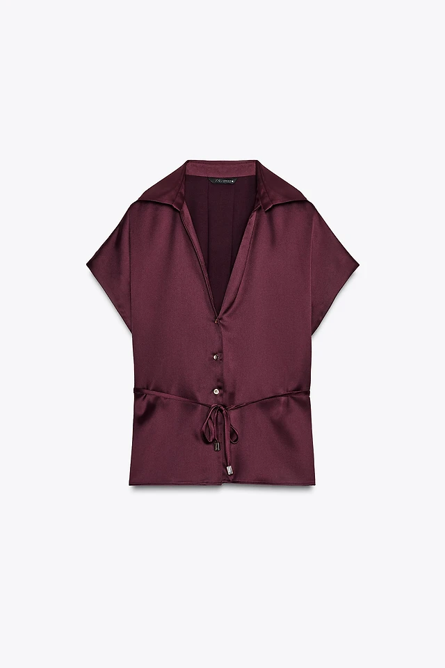 BELTED SATIN EFFECT SHIRT