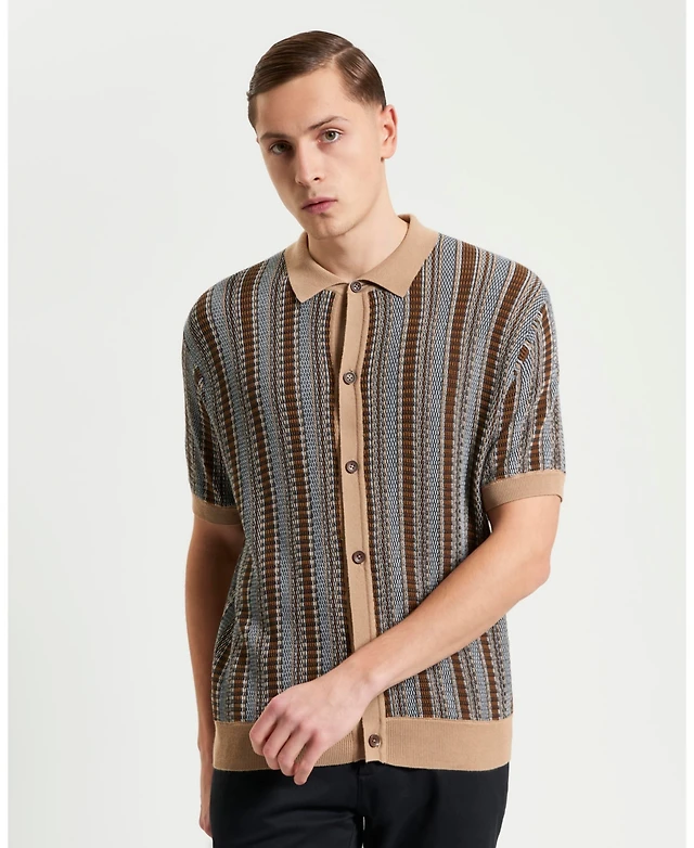 Ben Sherman Men's Textured Stripe Knitted Short Sleeve Shirt