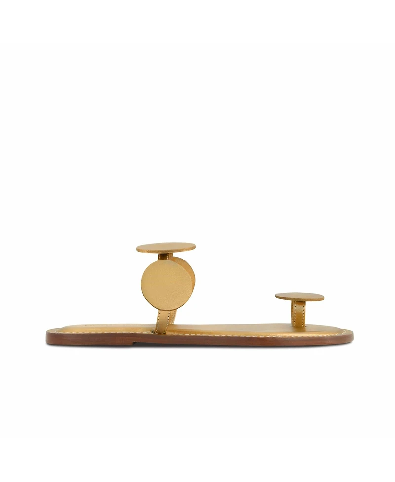 Discover new dimensions. This versatile flat sandal draws from Bernardo s celebrated archival style, combining its iconic upper — affixed with circular leather discs that give the shoe its name — with a comfort-driven, padded footbed featuring our signature stitching.