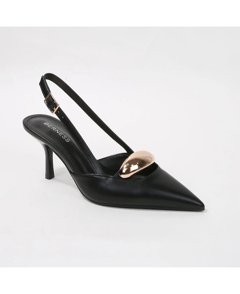 Berness Eltha Slingback Heels with Metallic Dome Accent