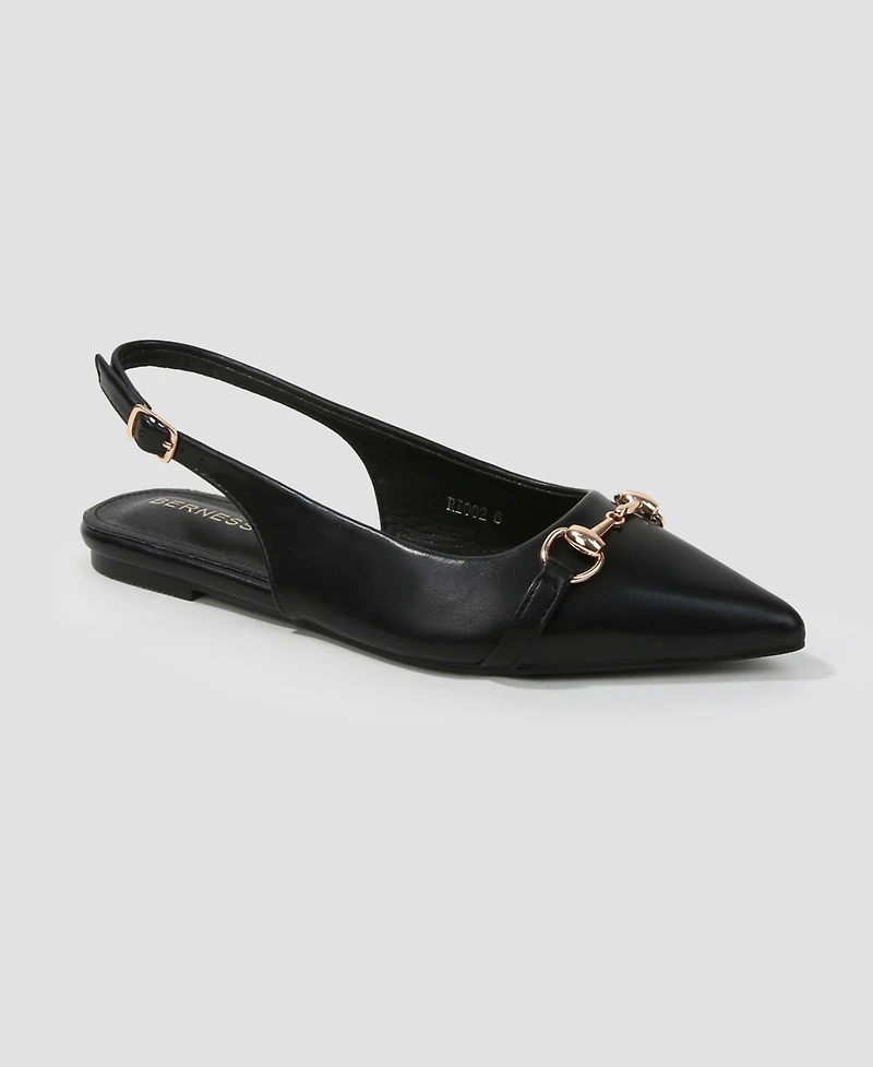 Rio02 pointed toe slingback flats feature a smooth man-made leather upper with a gold-tone bit accent for a chic detail.