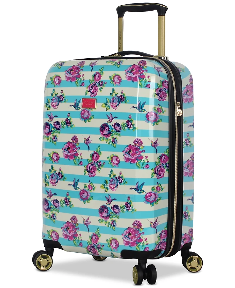 Your style will be the center of attention while traveling with this roomy 20"" carry on suitcase from Betsey Johnson. With this assortment of iconic Betsey Johnson patterns to choose from, expressing your fashion personality is as simple as choosing your favorite. The durable hardside case features divided packing plus smooth spinner wheels for easy mobility.