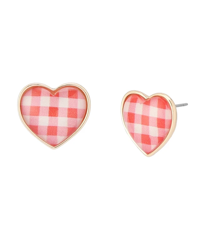 Betsey Johnson Backyard Gingham Heart Stud Earrings