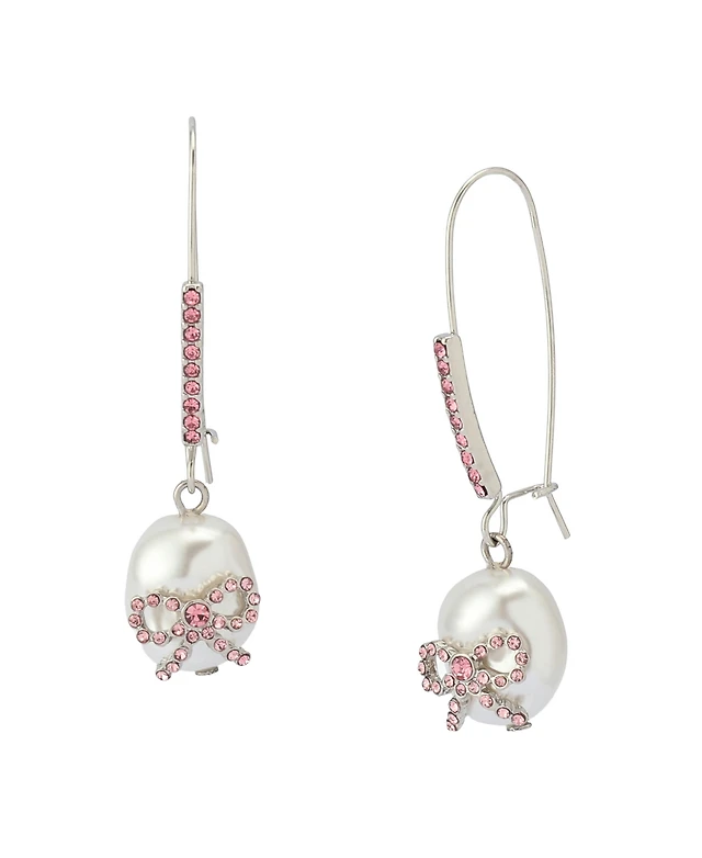 Betsey Johnson Faux Stone Bow Cultivated Pearl Dangle Earrings