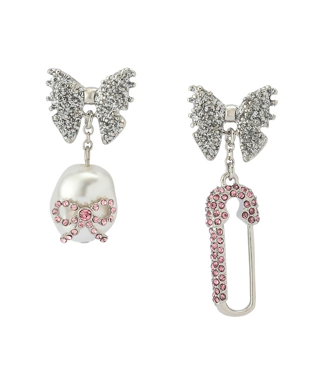 Betsey Johnson Faux Stone Bow Pearl Safety Pin Mismatch Earrings