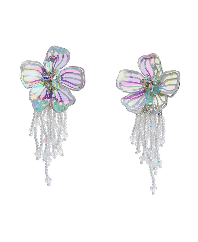 Betsey Johnson Faux Stone Garden Glam Flower Fringe Drop Earrings