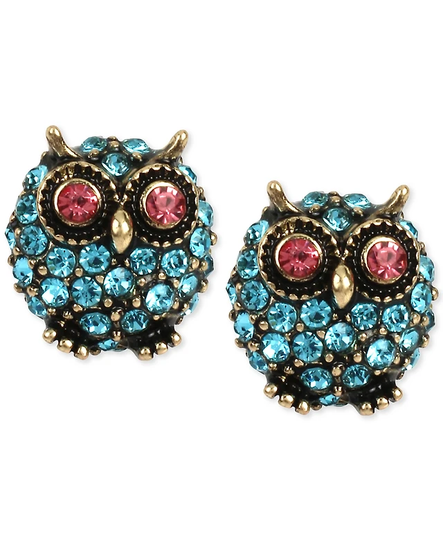 Betsey Johnson Gold-Tone Blue Pave Owl Stud Earrings