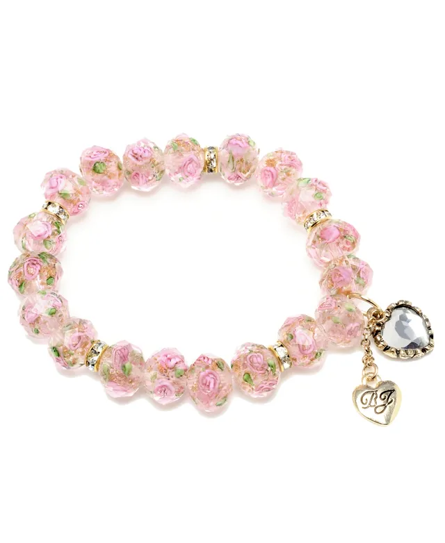 Betsey Johnson Pink Flower Beaded Stretch Bracelet