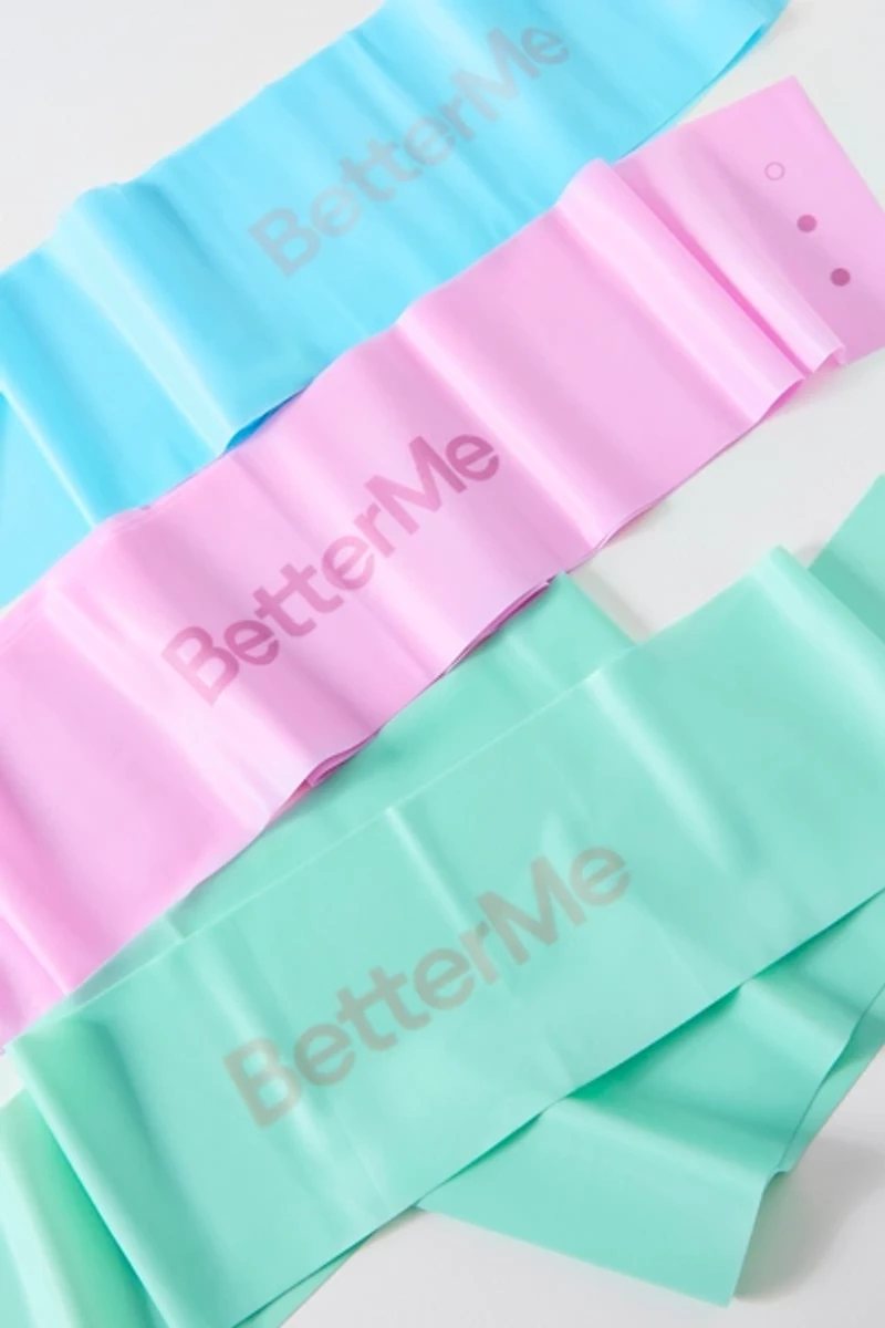 Enhance your daily workout with BetterMe’s resistance bands. Complete with three rubber resistance bands that offer three levels of resistance.