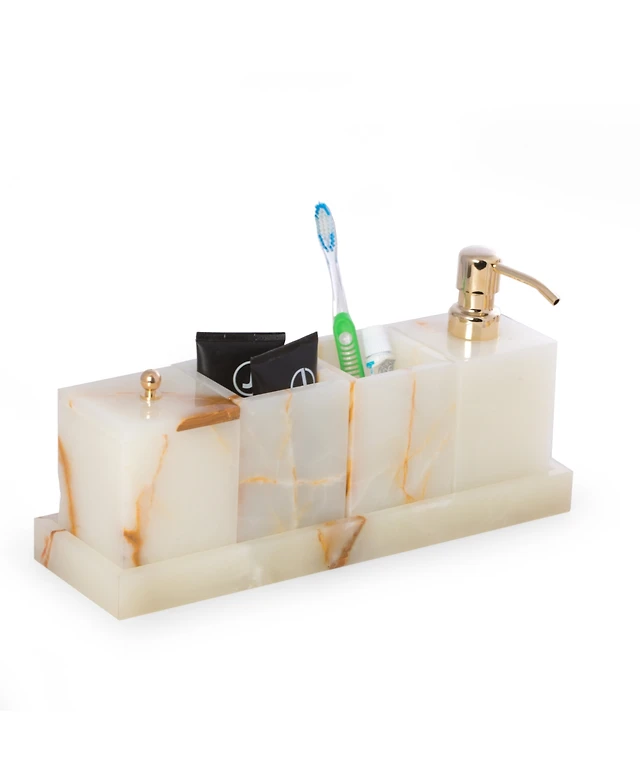 Bey-Berk Vanity 5 Piece Marble Onyx Set with 2 Tumblers, 1 Canister with Lid, 1 Dispenser and 1 Tray