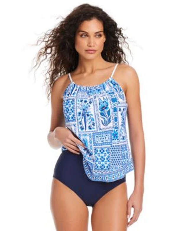 Beyond Control Women's Solid Front-Cascade Tankini Top