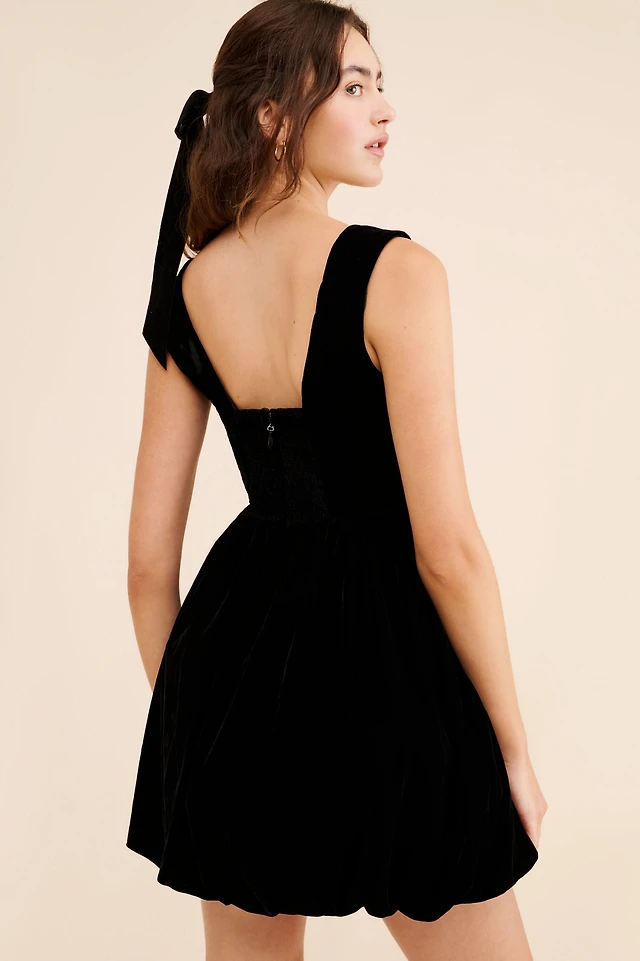 BHLDN Ariana Velvet Square-Neck Fit & Flare Mini Dress