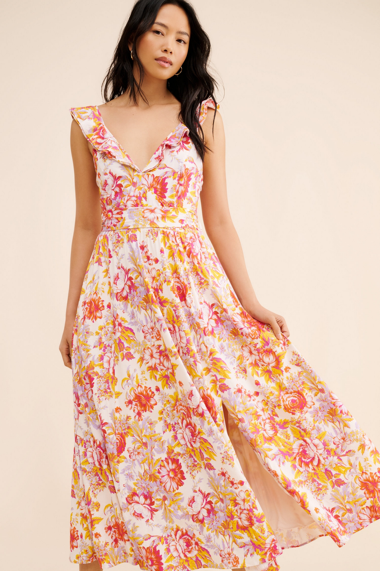 BHLDN Aubree Sleeveless Linen Floral Fit & Flare Maxi Dress