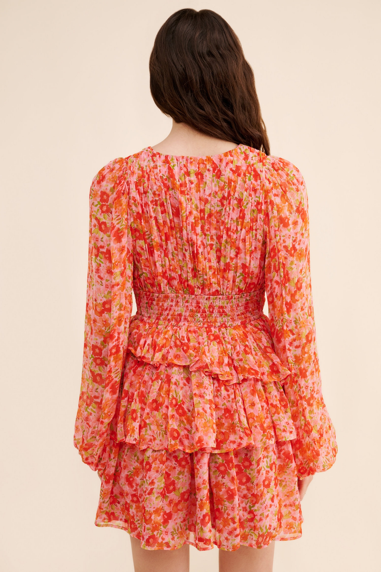BHLDN Emmy Long-Sleeve V-Neck Tiered Mini Dress