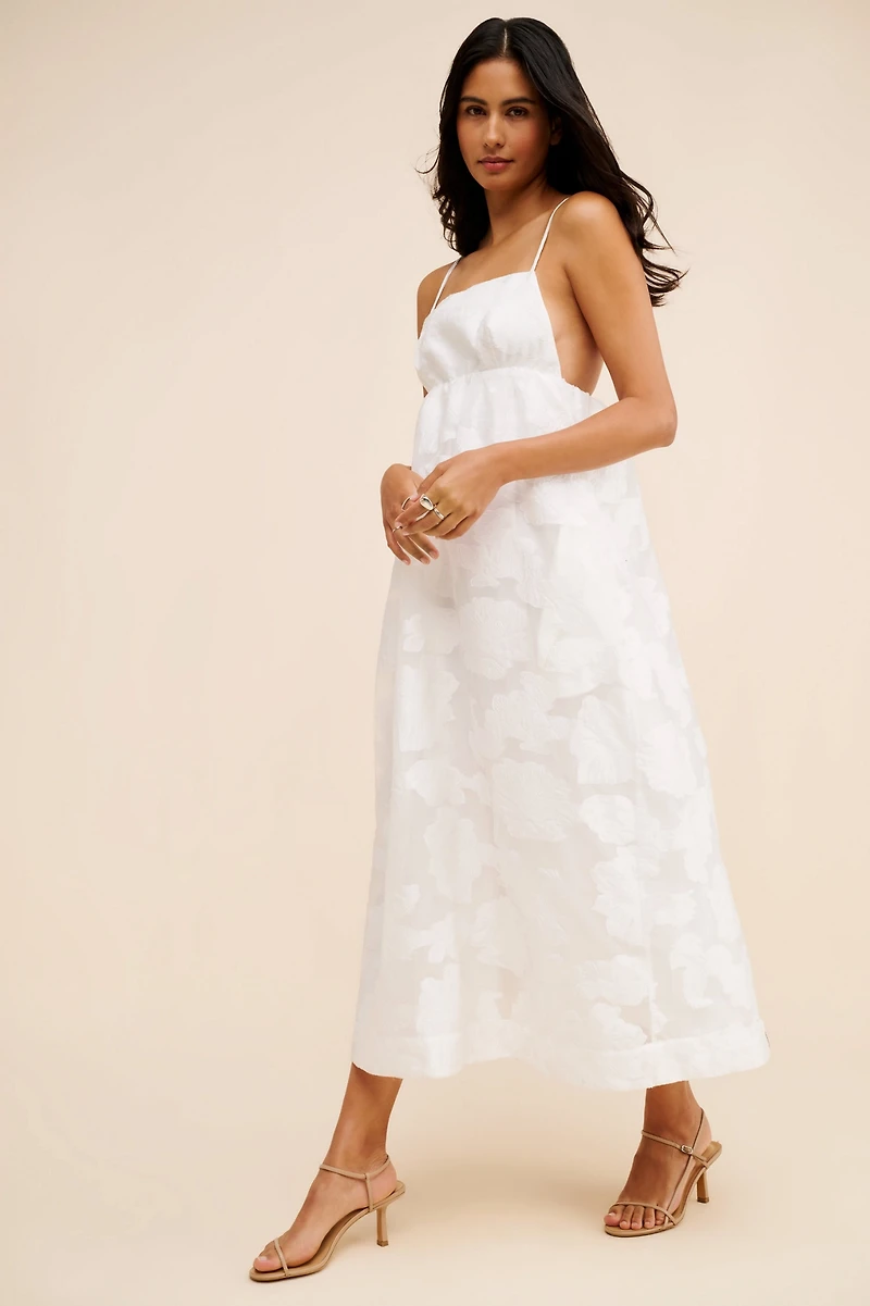 BHLDN Floral Burnout Jacquard Apron Maxi Dress