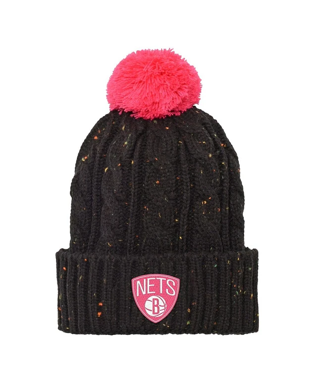 Women's Black Brooklyn Nets Meeko Cuffed Knit Hat with Pom