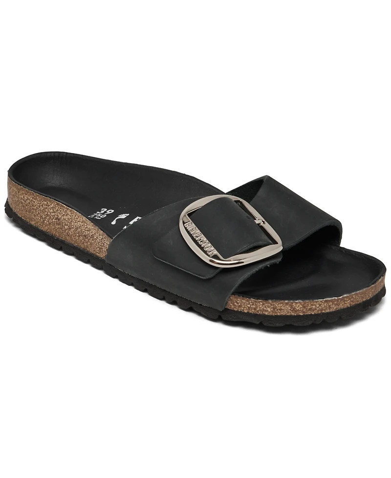 The signature Madrid silhouette gets magnified for these Birkenstock women's Madrid big buckle sandals. Its single-strap design features an oiled leather upper, an anatomically shaped cork-latex footbed, and an enlarged buckle for a bold composition that's big on comfort.