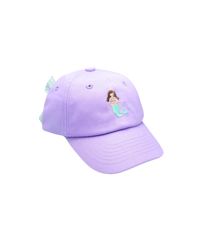 Bits & Bows Girls Brunette Mermaid Twill Bow Baseball Hat in Lavender