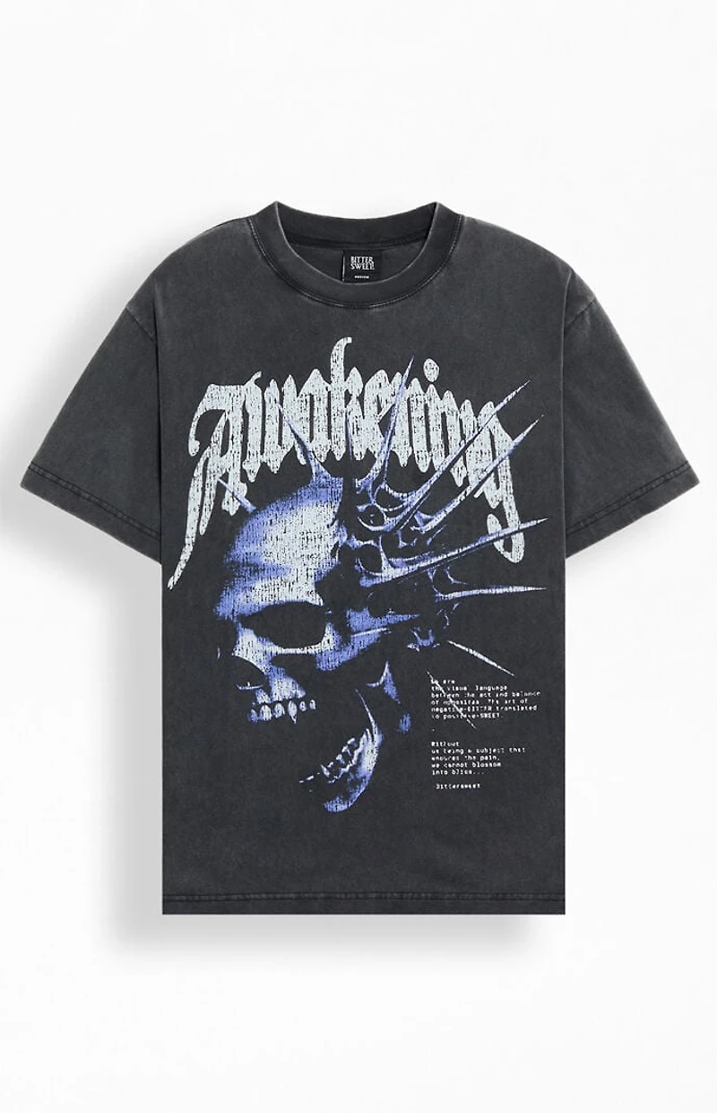 The Awakening T-Shirt from Bittersweet gives your casual wardrobe an edgy touch. This vintage wash tee features a classic crew neckline, short sleeves and a striking front graphic making it perfect for anyone who wants to stand out.