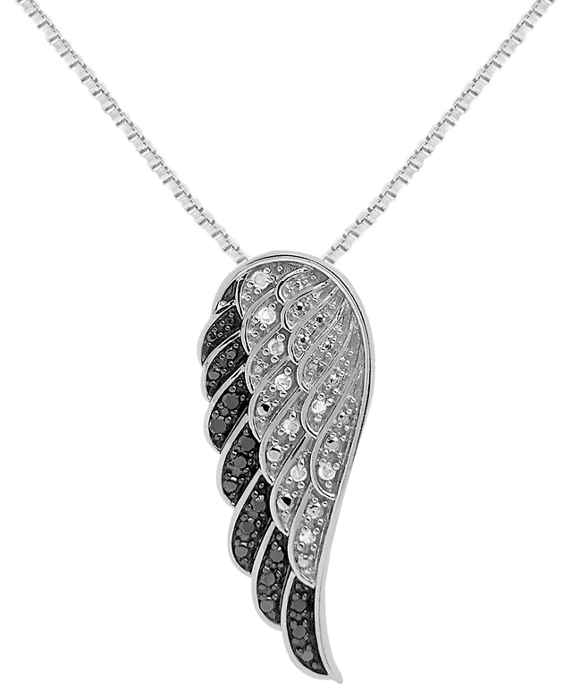 Black Diamond (1/10 ct. t.w.) & White Diamond (1/20 ct. t.w.) Wing 18" Pendant Necklace in Sterling Silver