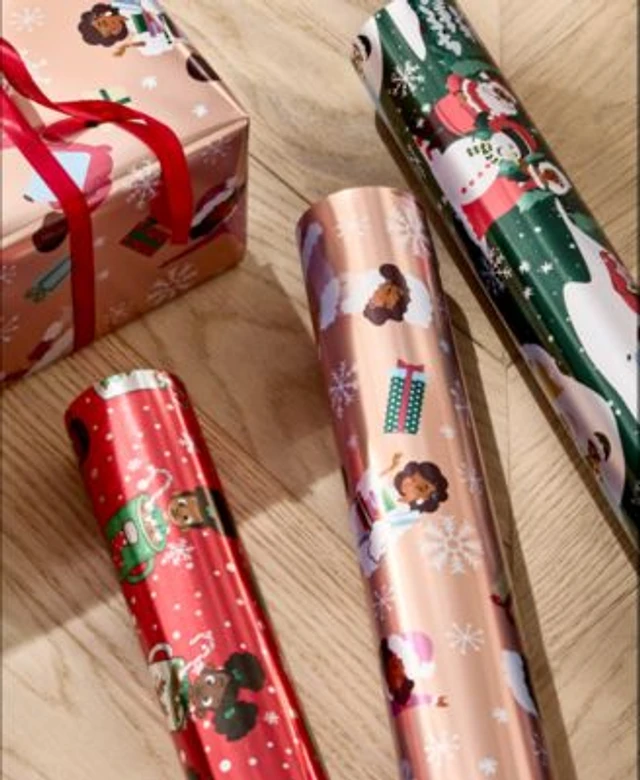 Black Paper Party Holiday Kids in Mugs Foil Giftwrap