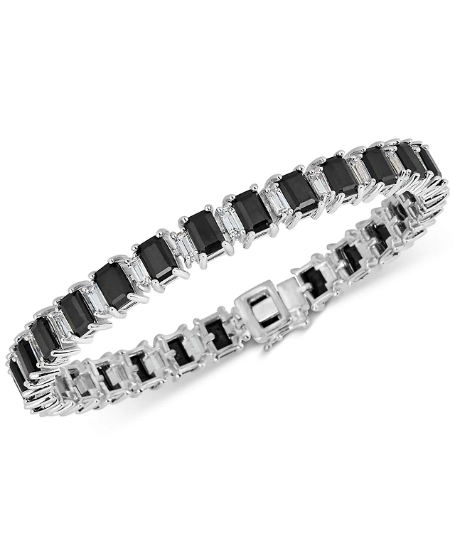 Black Sapphire (18 ct. t.w.) & White Topaz (4 ct. t.w.) Tennis Bracelet in Sterling Silver