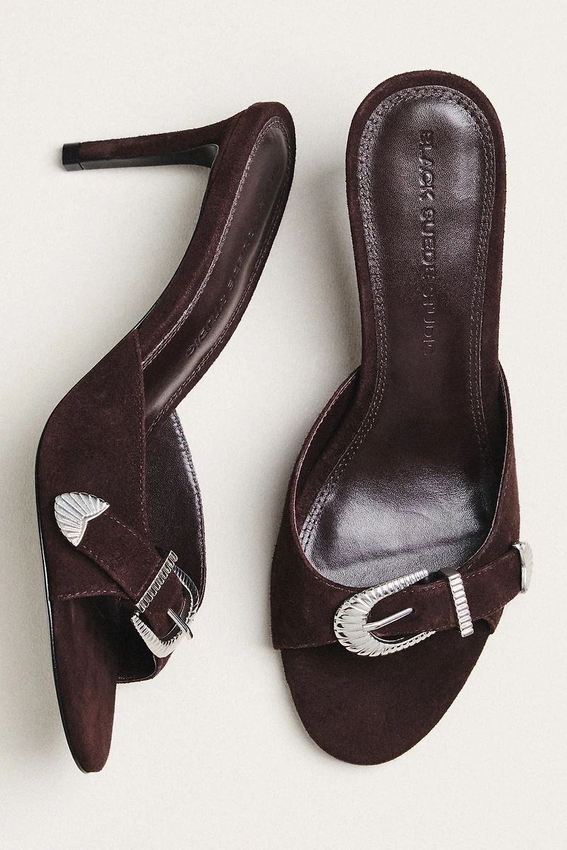 Black Suede Studio Elena Buckle Mule Heels in Bloomington, MN