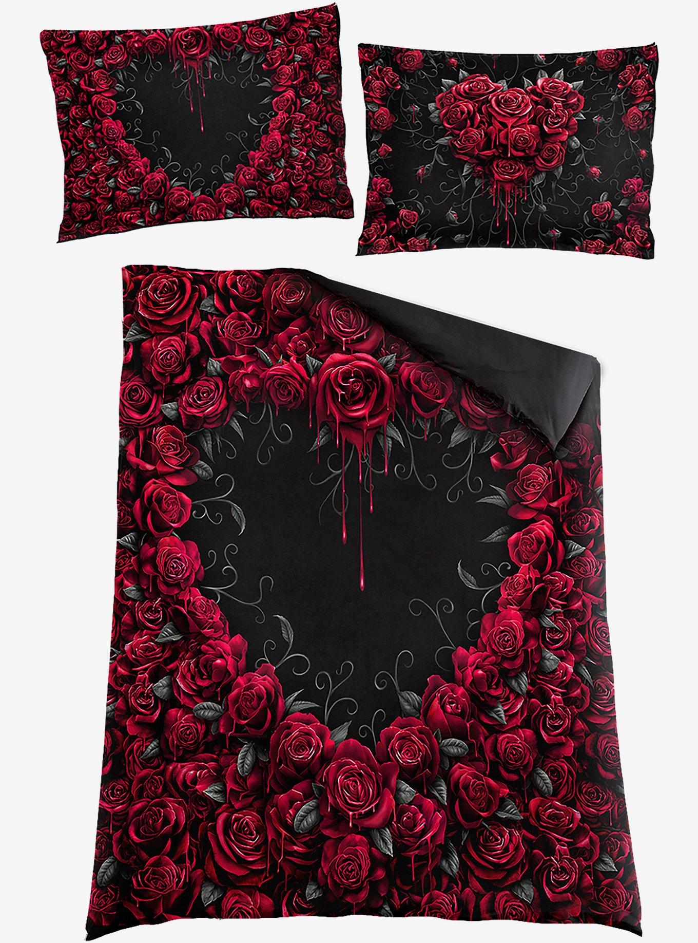 A beautifully beating bouquet of bloody roses, hand-picked from the flower bed of a cursed garden. Includes one duvet cover and two pillow cases. Fits a Single size bed and Standard size pillows. Item cannot be shipped to P.O. Boxes