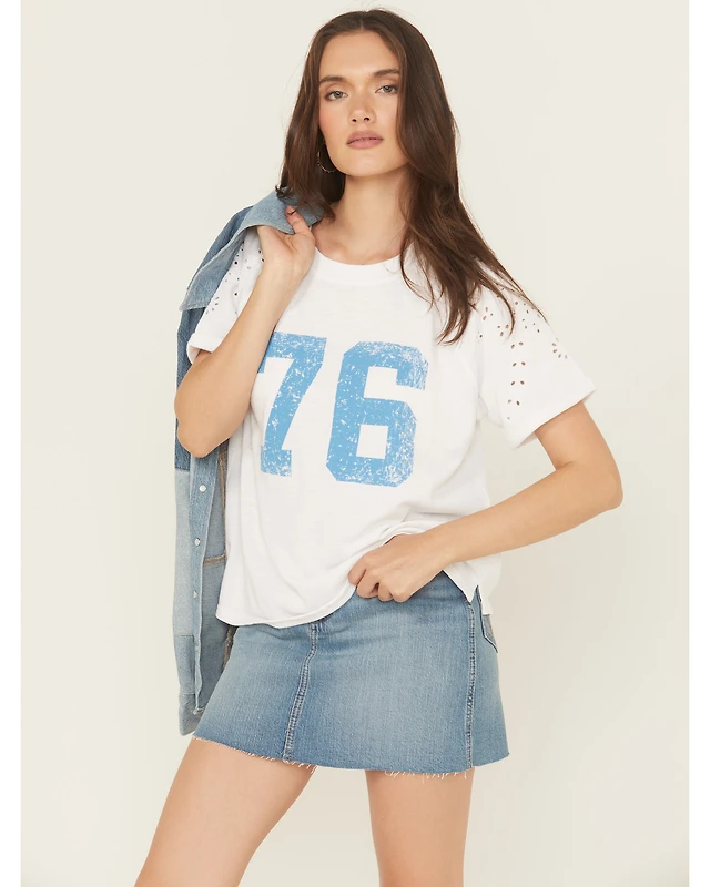 Blended Women's Eyelet Embroidered Short Sleeve Graphic Tee