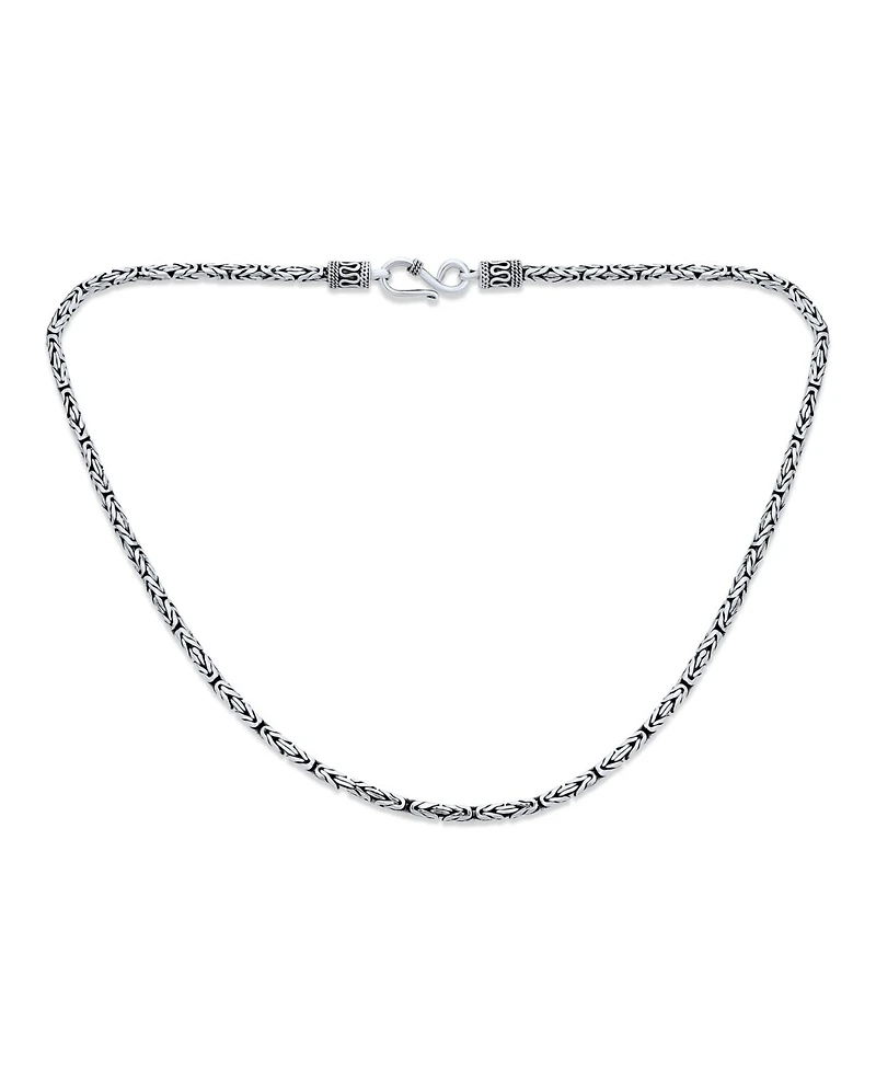 Bling Jewelry Bali Balinese Handmade 3MM Oxidized Sterling Silver Byzantine Link Chain Necklace