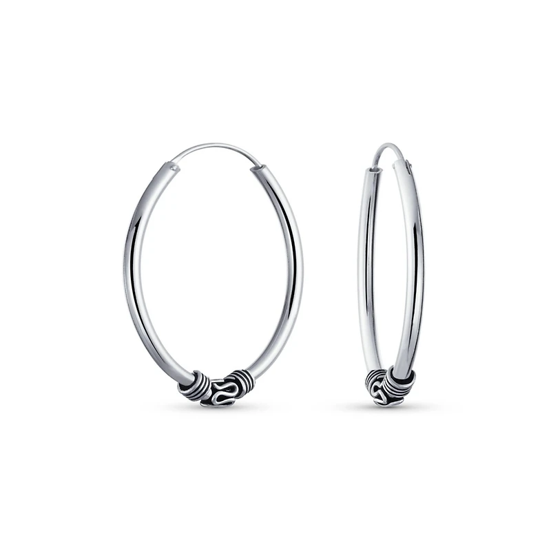 Bling Jewelry Bali Tribal Swirl Hoop Huggie Earrings Oxidized Sterling Silver Multiple Sizes