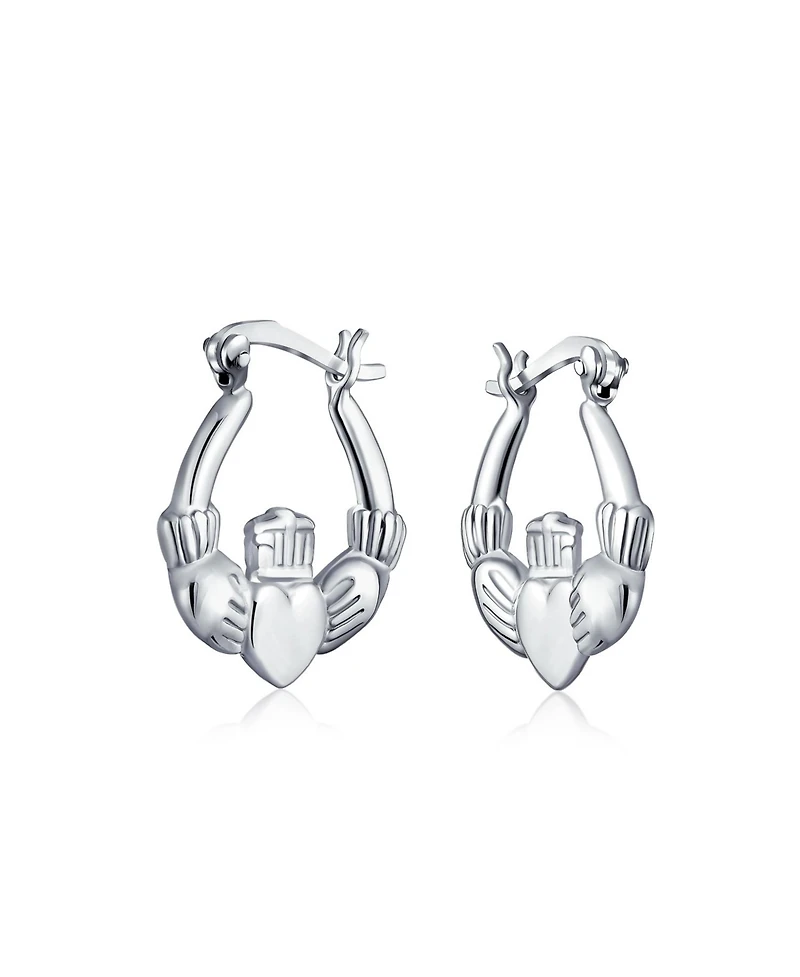 Bling Jewelry Bff Love Lightweight Heart Celtic Irish Friendship Claddagh Hoop Earrings Sterling Silver .5 Inch Diameter