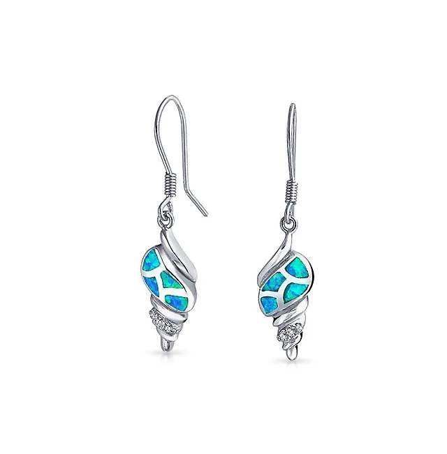 Bling Jewelry Blue Opal Inlay Sea Shell Dangle Earrings in Sterling Silver
