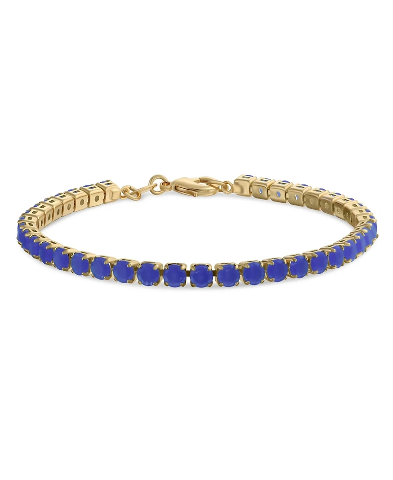 Elevate your style with this lightweight tennis bracelet featuring cabochon cut stones for a smooth, polished finish. The matte green hues and refined design make this classic bracelet truly enchanting. Adorned with richly vivid round CZs prong basket set , this piece adds a pop of color and holiday party style to any outfit. Perfect for a August birthday, this exquisite bracelet is a timeless choice.