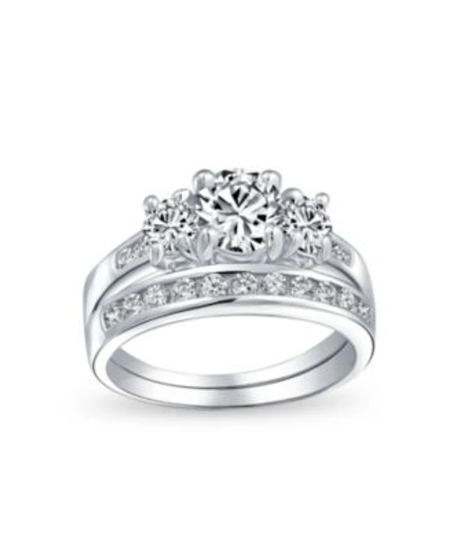Bling Jewelry Classic Round 3 Stone Cz Past Present Future Promise Ring Set Band Sterling
