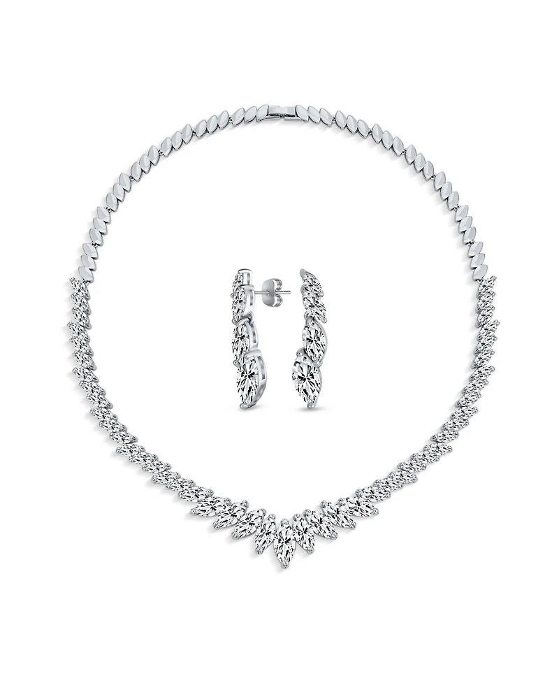 Bling Jewelry Classic Marquise Leaf Cz Statement V Necklace Chandelier Earrings Jewelry Set