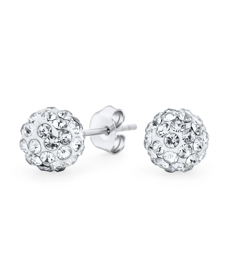 Bling Jewelry Elegant .925 Sterling Silver Round 8MM Glittering Pave Crystal Disco Ball Stud Earrings