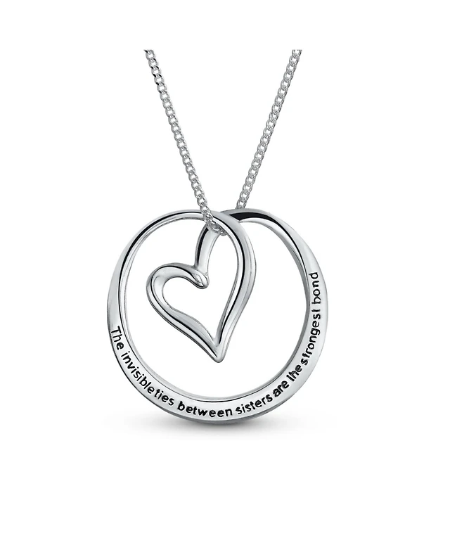 Bling Jewelry Sister Bond Circle Heart Pendant Sisters Necklace .925 Sterling Silver