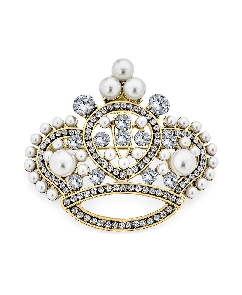 Bling Jewelry Large Fashion Crystal White Simulated Pearl Queen Crown Brooch Pin