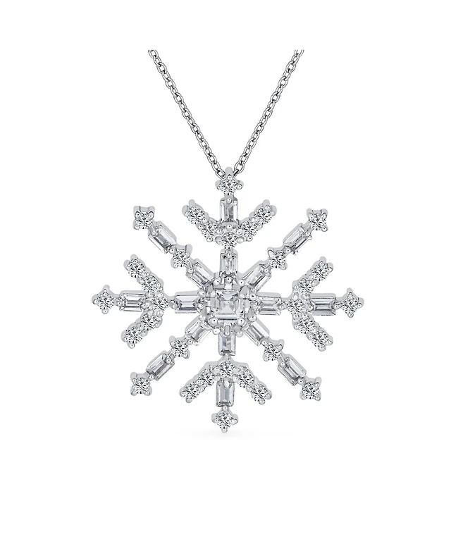 Bling Jewelry Large Sparkling Snowflake Cubic Zirconia Cz Branch Necklace Pendant Sterling Silver for Holiday Winter Party