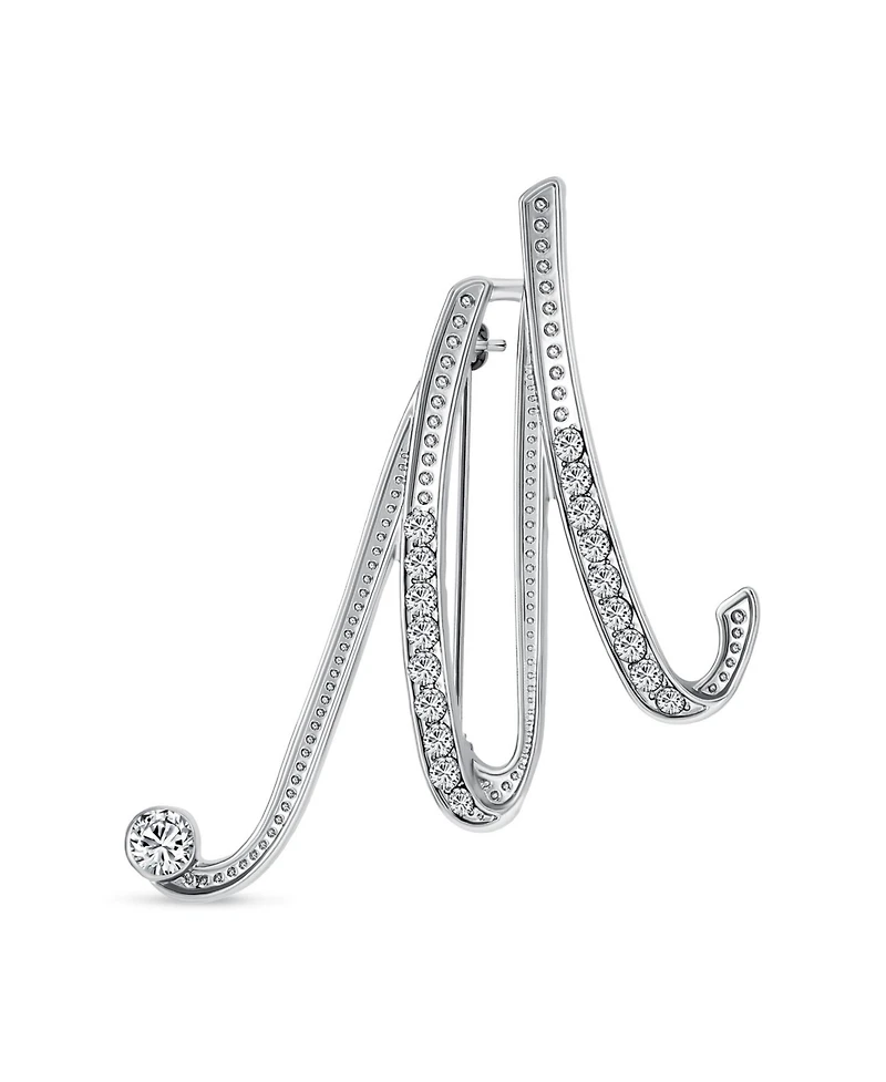 Bling Jewelry Large Statement Abc Pave Crystal Letters Alphabet Initial Scarf Lapel Pin Brooch Silver Plated