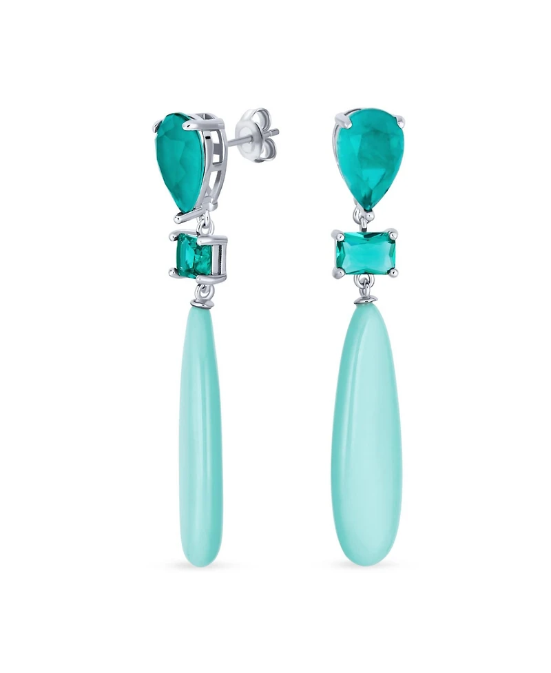 Bling Jewelry Linear Multi Color Black Onyx Blue Natural Turquoise Navy Sodalite Rose Quartz Chandelier Elongated Long Teardrop Dangling Earrings