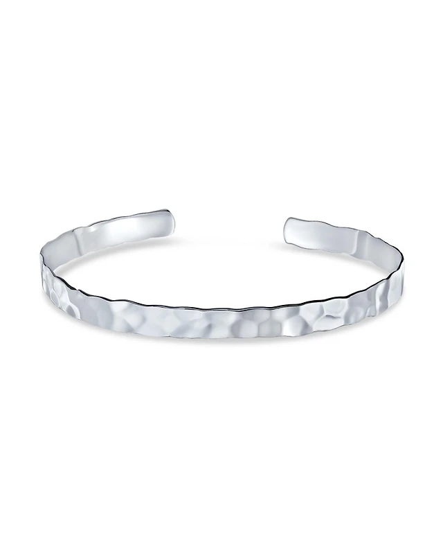 Bling Jewelry Medium Textured Honeycomb Stackable Hammered Bangle Cuff Matte Sterling Silver
