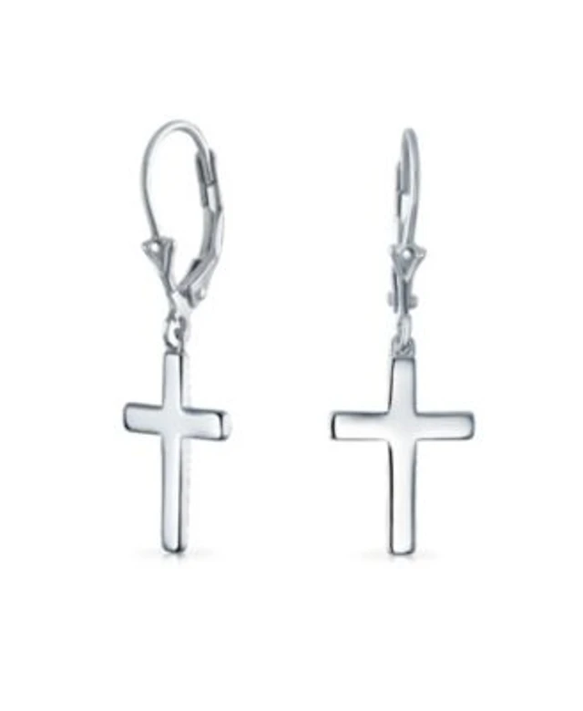 Bling Jewelry Minimalist Religious Cross Dangle Earrings 14K Gold Plated Sterling Silver