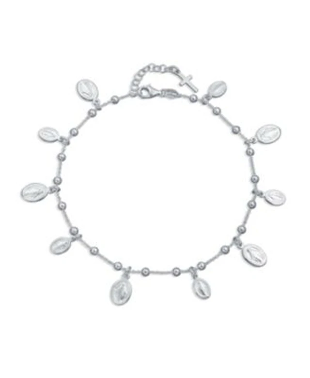Bling Jewelry Multi Charm Virgin Mary Medallion Religious Dangle Anklet Ankle Bracelet Sterling Silver Long 10 Inch 1"